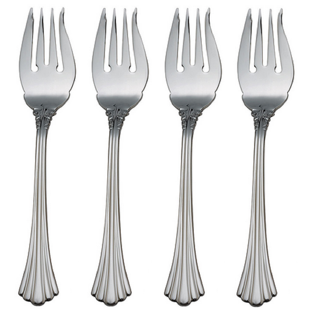 The dinner fork is somewhat. 2 rows Salad forks have four small tines which are broader and flatter. Salad fish dinner dessert and oyster forks.